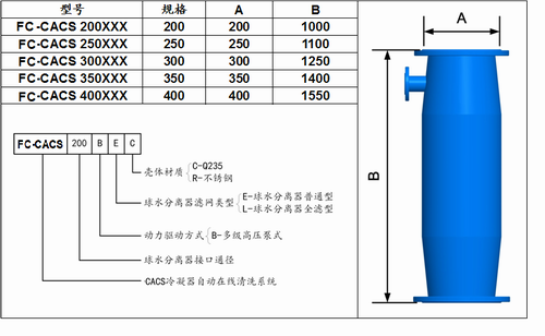 四、FC-CACS冷凝器在線清洗系統(tǒng)選型說(shuō)明: