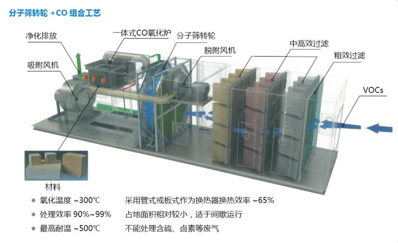 2、沸石轉(zhuǎn)輪吸附VOCs 所產(chǎn)生的壓降極低,可大大減少電力能耗。