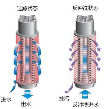 自動(dòng)疊式過濾器結(jié)構(gòu)簡(jiǎn)單,設(shè)計(jì)理念先進(jìn),自動(dòng)運(yùn)行,自清潔能力極強(qiáng),符合多種應(yīng)用需要。其工作原理為,多個(gè)過濾單元并聯(lián)運(yùn)行同時(shí)工作。反洗時(shí)保證只有一個(gè)單元在反洗,其它單元處于過濾狀態(tài),按順序逐一反洗,一個(gè)單元反洗完成后,經(jīng)過一段駐留時(shí)間后開始下一個(gè)單元反洗,這樣保證反洗時(shí)過濾器不斷流,并且使用系統(tǒng)內(nèi)已過濾水或外源清潔用水反洗。一體化濾芯總成在過濾時(shí)自動(dòng)壓緊疊片,反洗時(shí)自動(dòng)松開疊片,反洗時(shí)疊片在切向噴射水流的作用下高速旋轉(zhuǎn),在離心力與噴射水沖洗力的作用下,疊片間的雜質(zhì)被沖掉,從排水管排出,濾芯得到徹底清洗。過濾器共有兩種運(yùn)行狀態(tài):過濾狀態(tài)和反洗狀態(tài)。